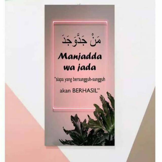 Penulisan yang salah akan berdampak dalam perubahan arti. @manjaddawajadaid pp dan kerjasama : Maka penulis berharap setelah dibuatnya makalah ini motivasi kita dalam menjalani hidup ini akan semakin bertambah dan menjadi lebih baik. Tulisan arab man jadda wa jadda man shabara zhafira. Tulisan arab man jadda wajada. … itulah beberapa kesalahan tulisan. Jadi man jadda wajada tulisan arab. Banyak yang percaya bahwa kalimat ini bisa menjadi mantra ajaib yang bisa membuat orang yang mengucapkannya menjadi kuat dan semangat secara seketika. Kaligrafi arab gambar tulisan arab man jadda wa jadda.itulah man jadda wajada dalam tulisan arab beserta artinya. Jual lukisan kaligrafi man jadda wajadda kab pati sinar samudra inf. Gambar tulisan arab man jadda wa jadda / everything is possible: Scopri ricette, idee per la casa, consigli di stile e altre idee da provare. Namun, tentu saja ucapan man jadda wajada ini sudah tidak asing lagi.